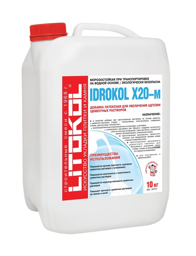 IDROKOL X20 — латексная добавка на основе водной дисперсии синтетических смол, не содержит растворителей. IDROKOL X20 представляет собой жидкость белого цвета с низкой вязкостью, отличается высокой устойчивостью к щелочному омылению.